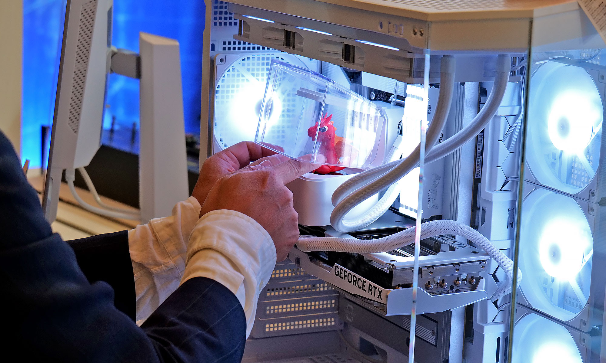 Now I absolutely admit that the enjoyable of getting a spinning desk inside your PC may be misplaced on lots of people. However then once more, simply take a look at Fortunate (that’s the title of MSI’s dragon mascot) twirling in place whereas the desktop churns alongside. And what’s higher is that you would be able to elevate the clear lid on the water block and put something you need inside. Take into consideration a flowery watch or perhaps a disco ball. Wouldn’t that be a hoot, particularly with all these RGB lights close by? Truthfully, the entire setup is type of mesmerizing.