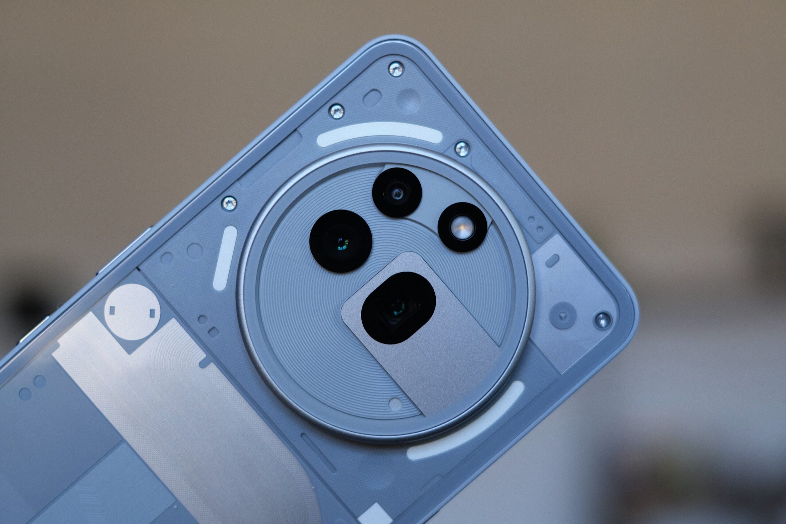 Nothing has as soon as once more rejigged the uncovered {hardware}, and the Glyph lighting particulars are all on the prime of the telephone, circling the digital camera unit. On the Telephone 3a Professional, courtesy of a brand new periscope sensor able to 3X optical zoom, a considerable round digital camera unit protrudes from the again.
